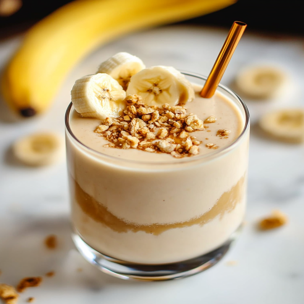 - Serve: Pour into tall glasses, garnish with banana slices, and enjoy!