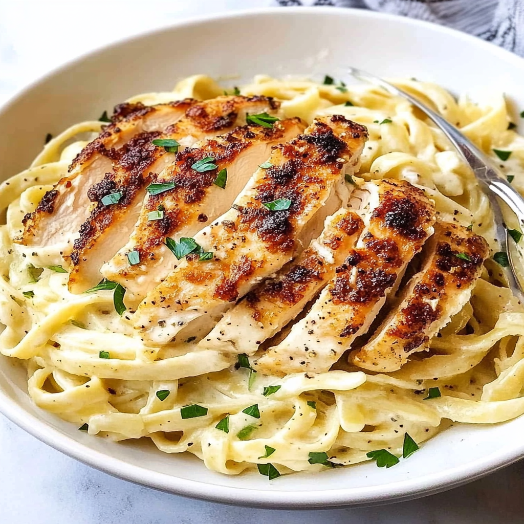 Chicken Fettuccine Alfredo is a comforting dish that combines tender chicken and creamy sauce over fettuccine pasta. Its simplicity makes it a favorite among home cooks. With just a few basic ingredients and quick preparation, this meal is perfect for busy weeknights or special occasions alike. Don’t hesitate to customize it with your favorite vegetables or proteins to suit your tastes!