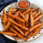 Transfer those gorgeous baked sweet potato fries onto plates or into a bowl. They’re ready to be devoured solo or dipped in your favorite sauce!