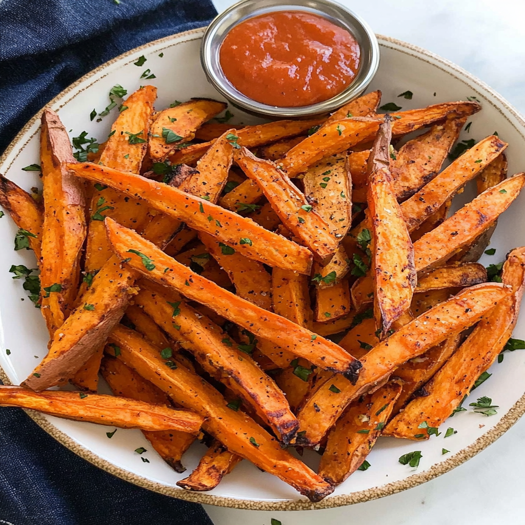 Baked sweet potato fries offer numerous health benefits. They are rich in vitamins A and C, which boost your immune system and promote healthy skin. Sweet potatoes also provide dietary fiber, aiding digestion and helping to maintain a healthy weight. Compared to regular fries, they contain fewer calories and unhealthy fats since they are baked instead of deep-fried. Additionally, their natural sweetness makes them a delicious alternative to traditional potato fries, making it easier to satisfy cravings without compromising on nutrition.