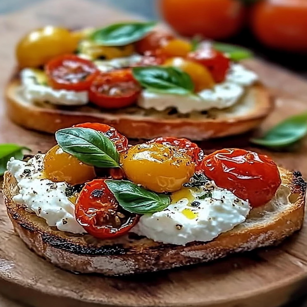 Start by roasting your tomatoes in the oven to bring out their natural sweetness. While they roast, prepare the ricotta mixture by blending it with herbs and spices. Assemble the bruschetta on toasted bread just before serving for maximum crunch.