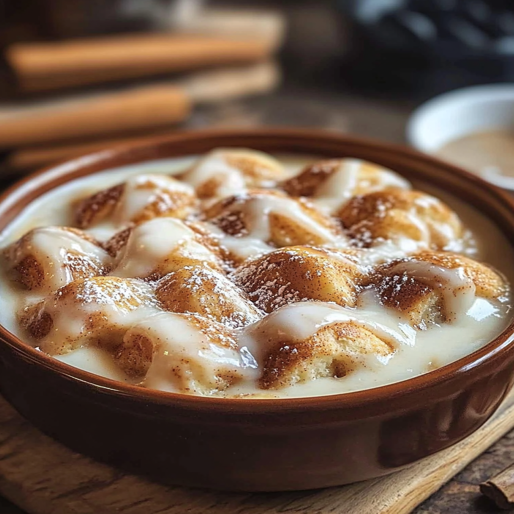 - To get the perfect texture for your Cinnamon Roll Bread Pudding NYE, ensure you let the mixture soak for at least 15 minutes before baking.