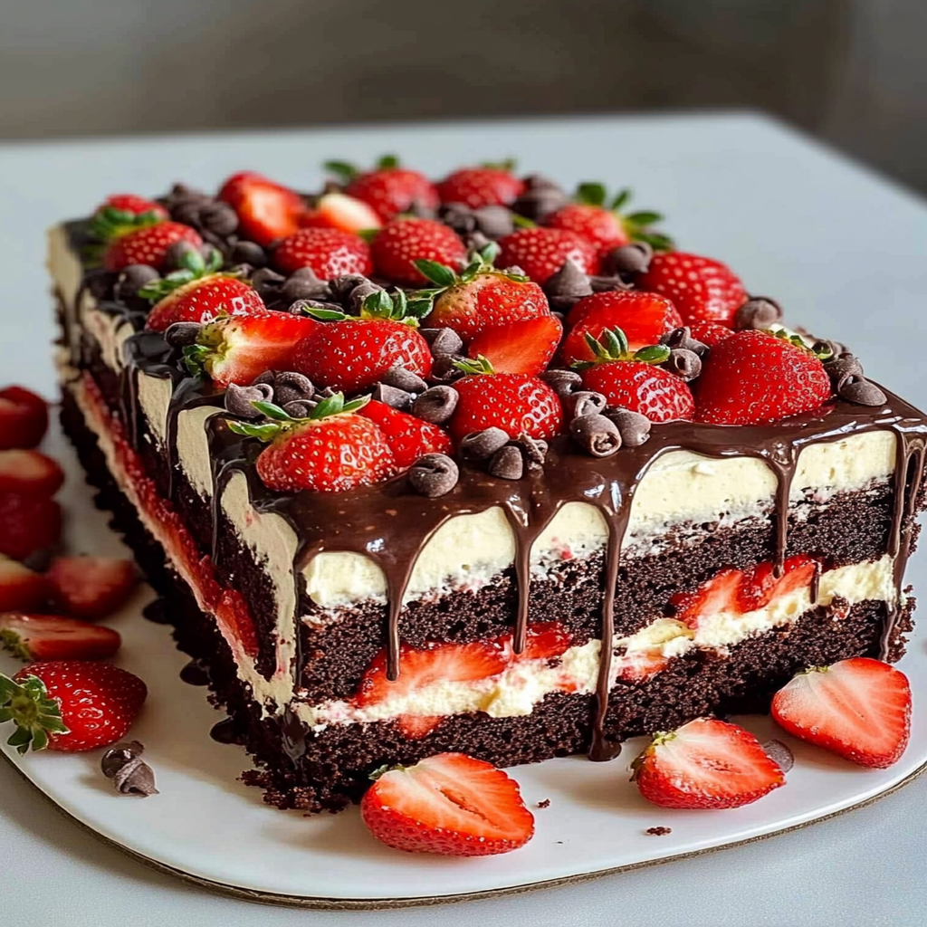 - This delightful strawberry chocolate cake combines rich chocolate with fresh strawberries for an irresistible dessert.