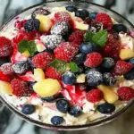 A Berry Cheesecake Salad is a delightful combination of fresh berries, creamy cheesecake filling, and a crunchy topping. This dessert salad offers the rich flavors of traditional cheesecake in a lighter, more refreshing form. It typically includes ingredients like strawberries, blueberries, raspberries, and a mixture of cream cheese, yogurt, or whipped cream. Enjoy it as a light dessert or a sweet treat for gatherings. For more inspiration, check out this strawberry cheesecake cookies recipe.