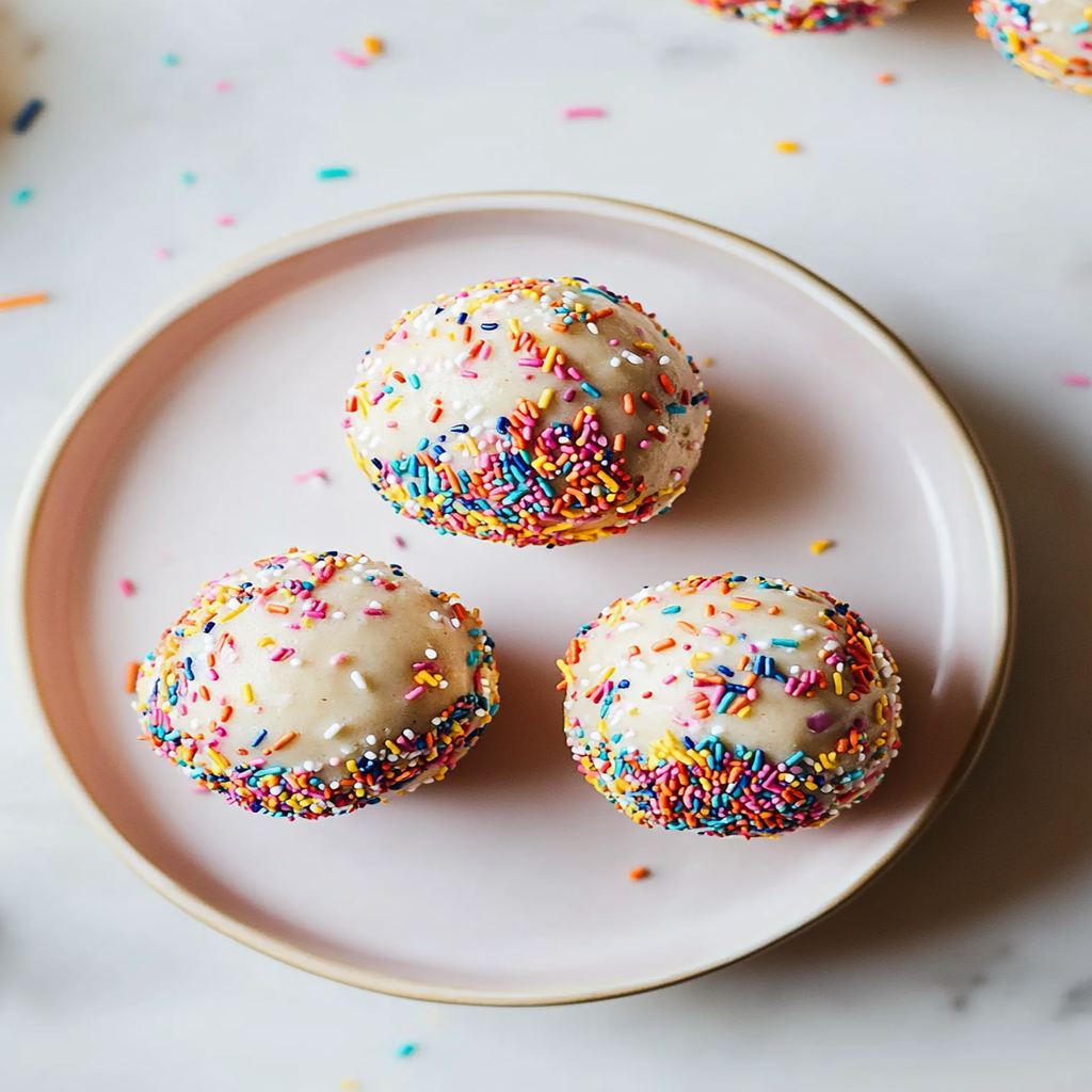 Store your Confetti Cookie Dough Balls in an airtight container in the fridge for up to a week. For longer storage, freeze them in single layers and thaw as needed. These little bites are best served chilled!