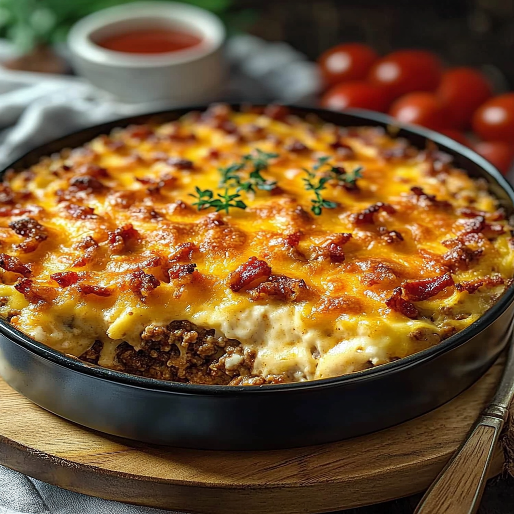 Sauté the bacon until crispy, then brown the ground beef with onions. Blend in spices, followed by cheese and creamy goodness. Pour everything into a baking dish and let it bake until bubbly perfection emerges.