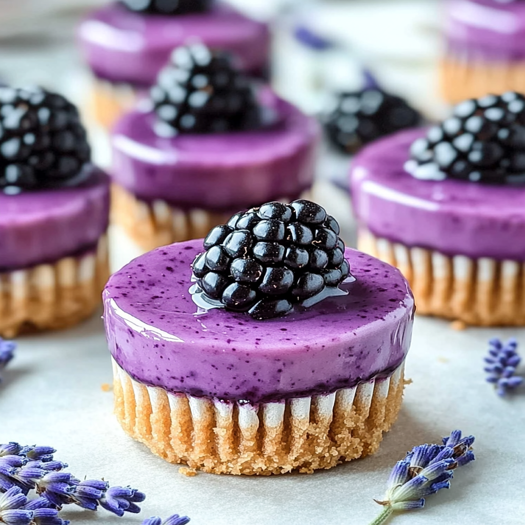 Mini Blackberry Lavender Cheesecakes are the perfect blend of creamy richness and floral sweetness, making them an irresistible dessert for any occasion. These delightful mini treats feature a buttery graham cracker crust topped with a luscious filling infused with fresh blackberries and aromatic lavender. Ideal for summer picnics or cozy nights in, each bite transports you to a sun-drenched meadow filled with blooming lavender. Easy to prepare and stunning in presentation, these cheesecakes will surely impress your guests.