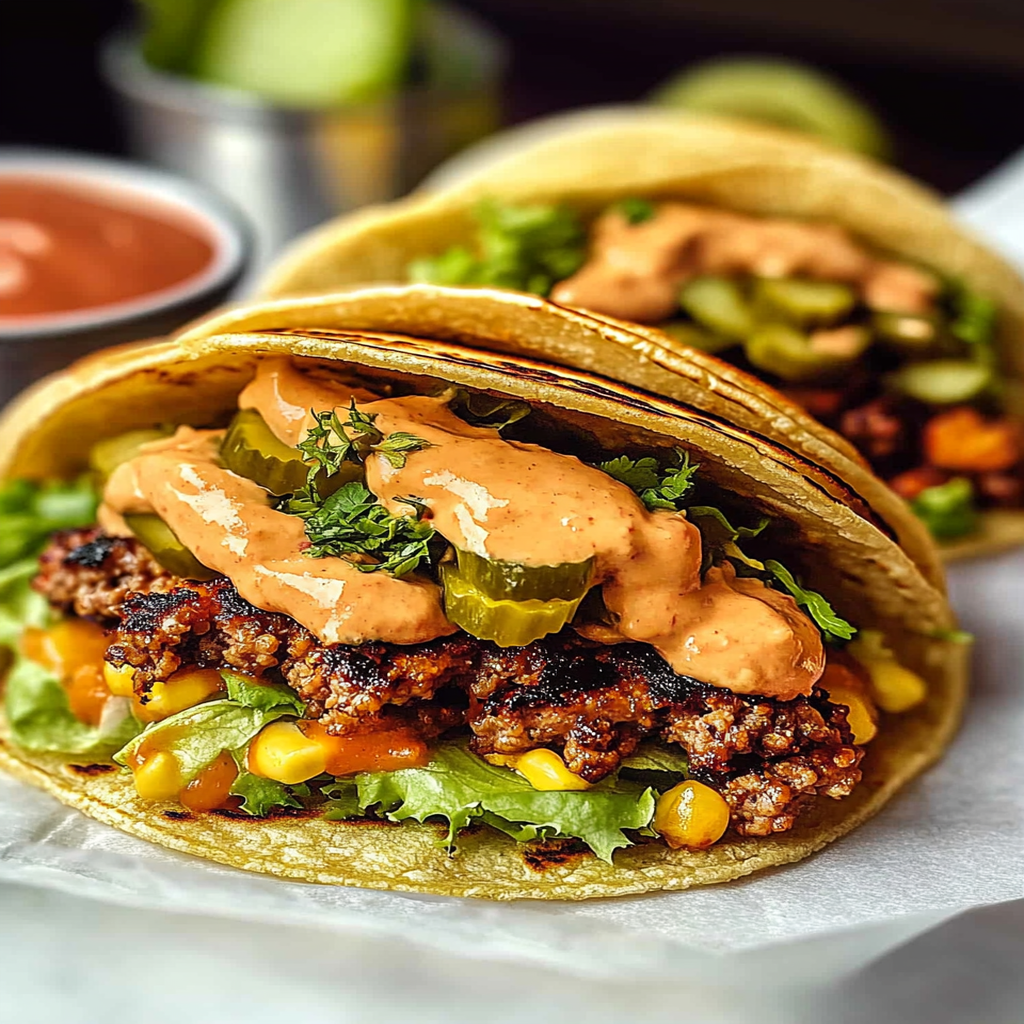 Absolutely! The customization options for Smash Burger Tacos are endless. You can experiment with different toppings such as avocado, jalapeños, onions, or various cheeses. For sauces, consider using barbecue sauce, ranch dressing, or a spicy mayo to elevate the flavor. You can also swap out proteins like turkey or plant-based alternatives to suit dietary preferences while still enjoying this delightful dish. For more inspiration, check out this Homemade Big Mac Sauce recipe.