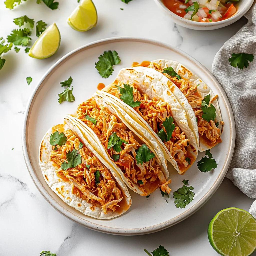 Imagine sinking your teeth into a warm, soft tortilla cradling perfectly seasoned, tender shredded chicken tacos that burst with flavor and a hint of spice. The aroma wafts through the air, making it impossible to resist as you anticipate that first bite, where the juicy chicken meets zesty toppings and creamy avocado, creating a symphony of deliciousness that dances on your taste buds.