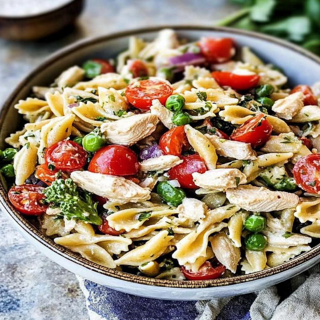 Mediterranean Chicken Pasta Salad is a refreshing and vibrant dish that combines juicy chicken, al dente pasta, and crisp vegetables all tossed in a zesty olive oil dressing. Bursting with flavor and color, this salad is perfect for picnics, barbecues, or as a quick weeknight meal. Easy to prepare and customizable, it’s sure to delight your taste buds and brighten any table setting.